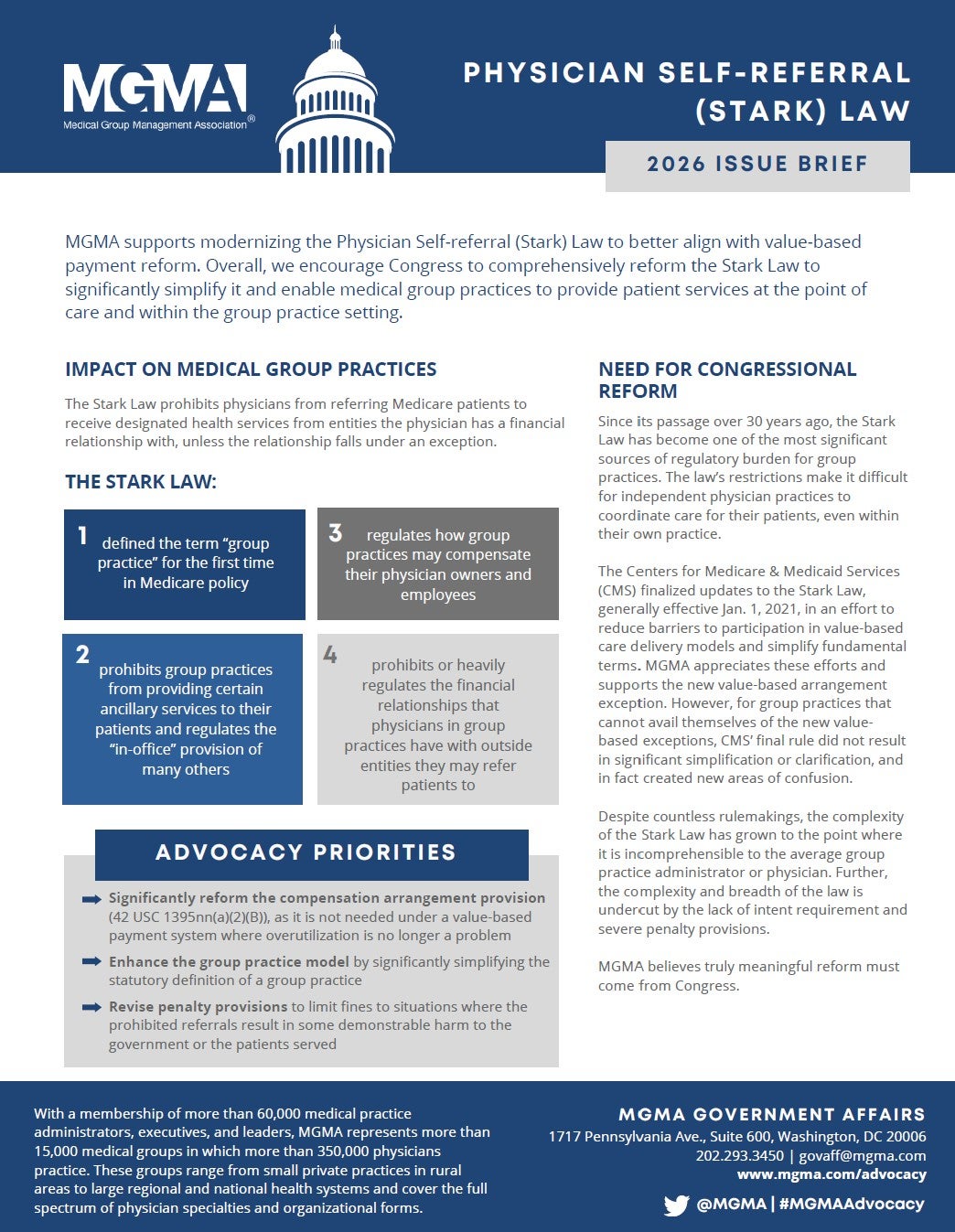 The foundation of MGMA’s advocacy agenda is to ensure the sustainability of medical group practices and advance their ability to provide high-quality patient care.