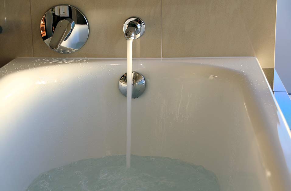 - The bathtub overflows, water pouring into the hall