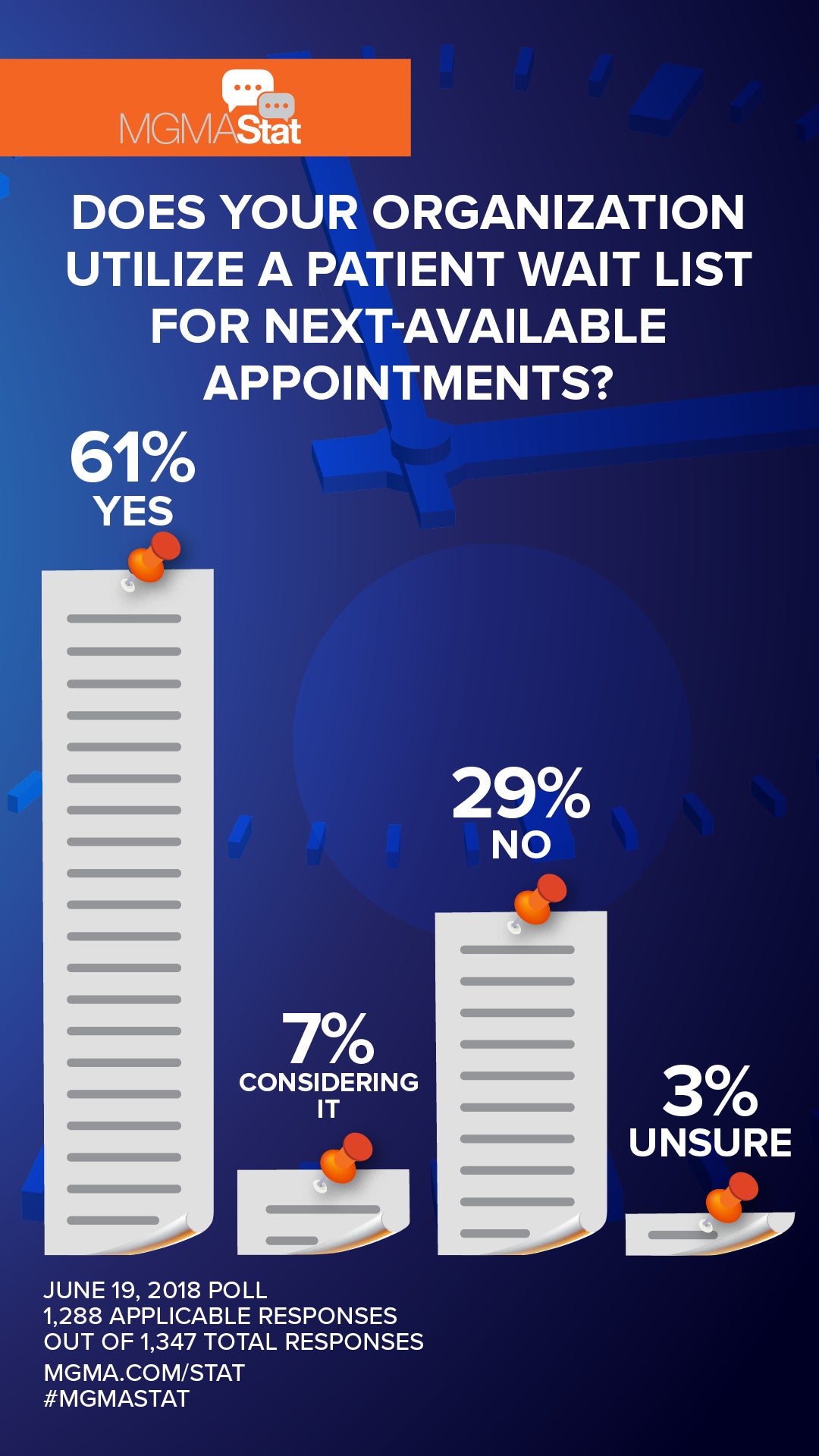 MGMA Stat poll indicates widespread use of patient wait lists for next-available appointments