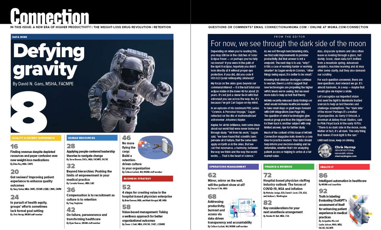 MGMA members enjoy exclusive access to MGMA Connection magazine.