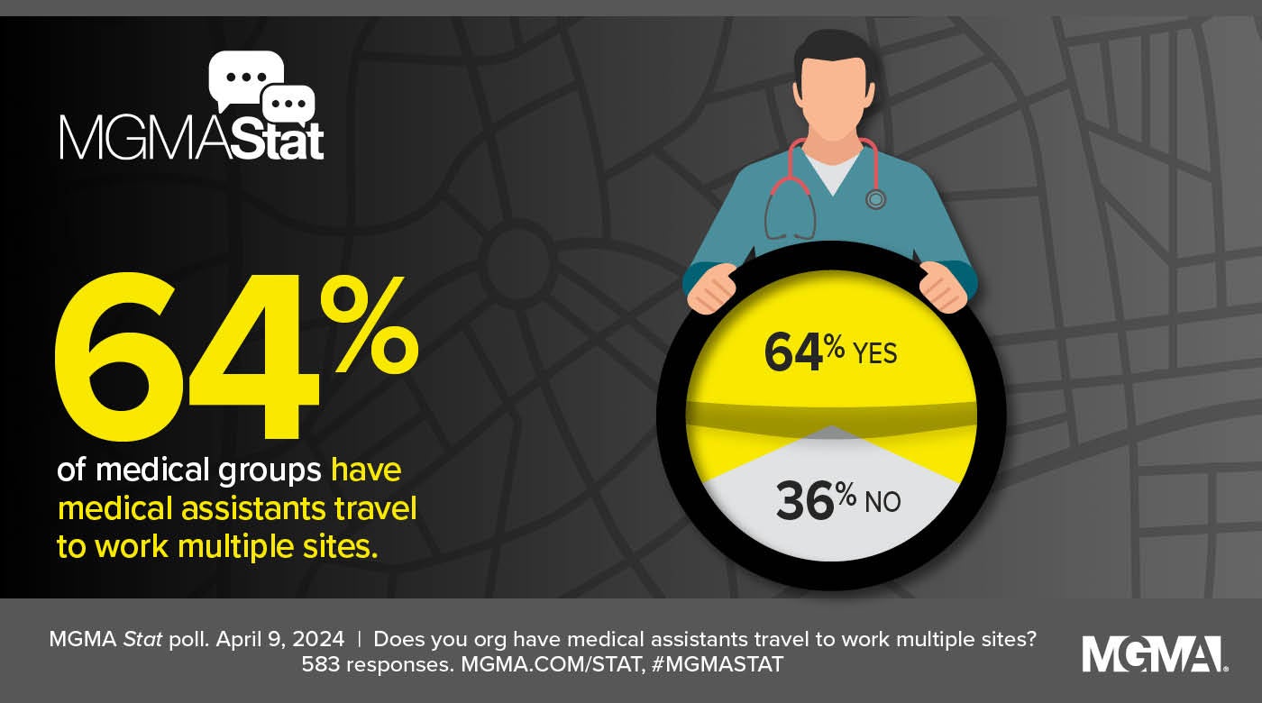 An April 9, 2024, MGMA Stat poll found that almost two-thirds (64%) of medical groups report using multisite MAs, while 36% do not. The poll had 583 applicable responses.