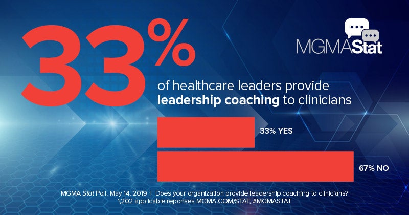 The Medical Group Management Association’s most recent MGMA Stat poll asked healthcare leaders, “Do you provide leadership coaching to clinicians?” The majority of respondents (67%) answered “No,” while 33% responded “Yes."