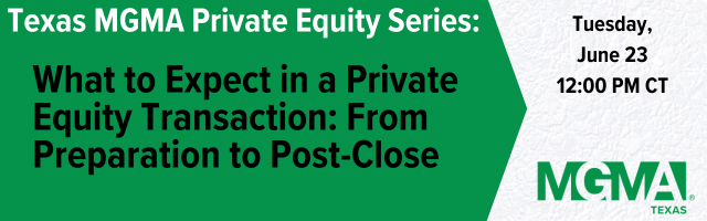 This session walks through what a private equity transaction actually looks like at each phase. We will cover the financial preparation required before launching a process, what typically happens during diligence and negotiation, and what life looks like after the deal closes. Participants will gain insight into common surprises, shifting negotiation dynamics, and how private equity deals in healthcare practices typically play out in the real world — not just on paper.